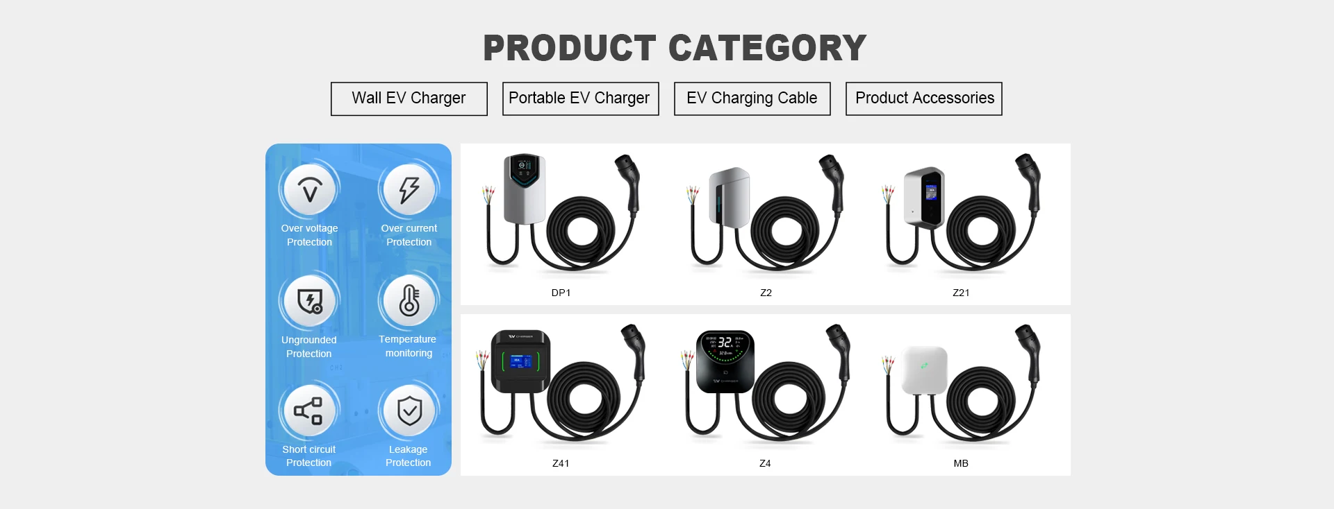 Main categories: EV Charging Cable, Portable EV Charger, Wallbox EV Charger, EV Adaptor